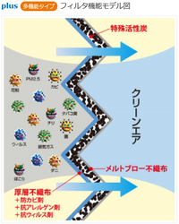メルトブロ不織布で、PM2.5などの細かい粒子もキャッチします。
